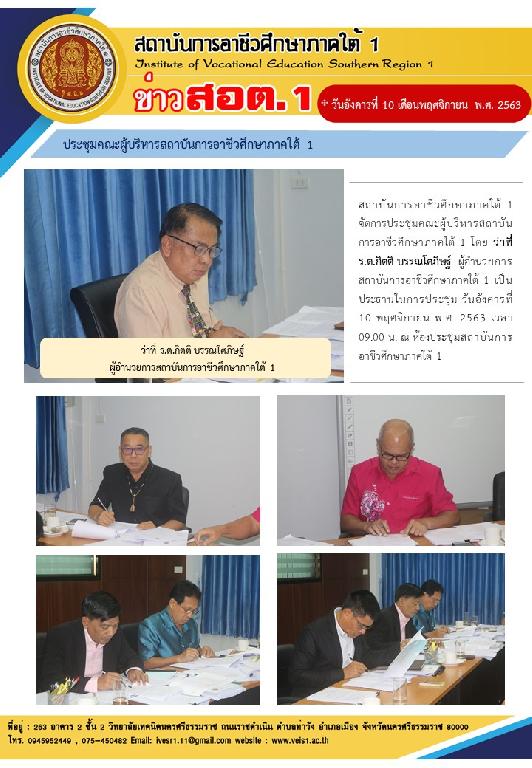 พฤศจิกายน พ.ศ. 2563 สถาบันการอาชีวศึกษาภาคใต้ 1 โดย ว่าที่ ร.ต.กิตติ
