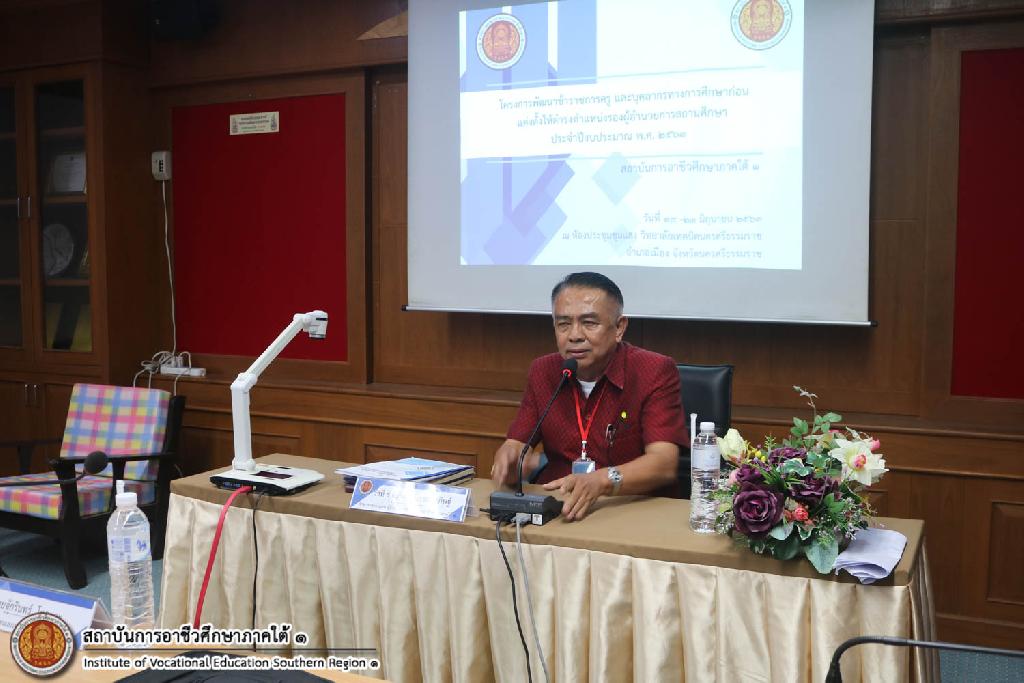 หัวข้อข่าว : สถาบันการอาชีวศึกษาภาคใต้ 1 โครงการพัฒนาข้าราชการครู และบุคลากรทางการศึกษา ก่อนแต่งตั้งให้ดำรงตำแหน่งรองผู้อำนวยการสถานศึกษา ประจำปีงบประมาณ พ.ศ.2563 วันที่ : 18 มิ.ย. 2563 รายละเอียด : วันที่ 18 มิถุนายน 2563 นายอำนาจ เต็มสงสัย นายกสภาสถาบันการอาชีวศึกษาภาคใต้ 1 เป็นประธานเปิดโครงการพัฒนาข้าราชการครูและบุคลากรทางการศึกษา ก่อนแต่งตั้งให้ดำรงตำแหน่งรองผู้อำนวยการสถานศึกษา ประจำปีงบประมาณ พ.ศ. 2563 ผู้เข้ารับการพัฒนาตามโครงการก่อนแต่งตั้งดำรงตำแหน่งรองผู้อำนวยการสถานศึกษา สถาบันการอาชีวศึกษาภาคใต้ 1 ประกอบด้วย