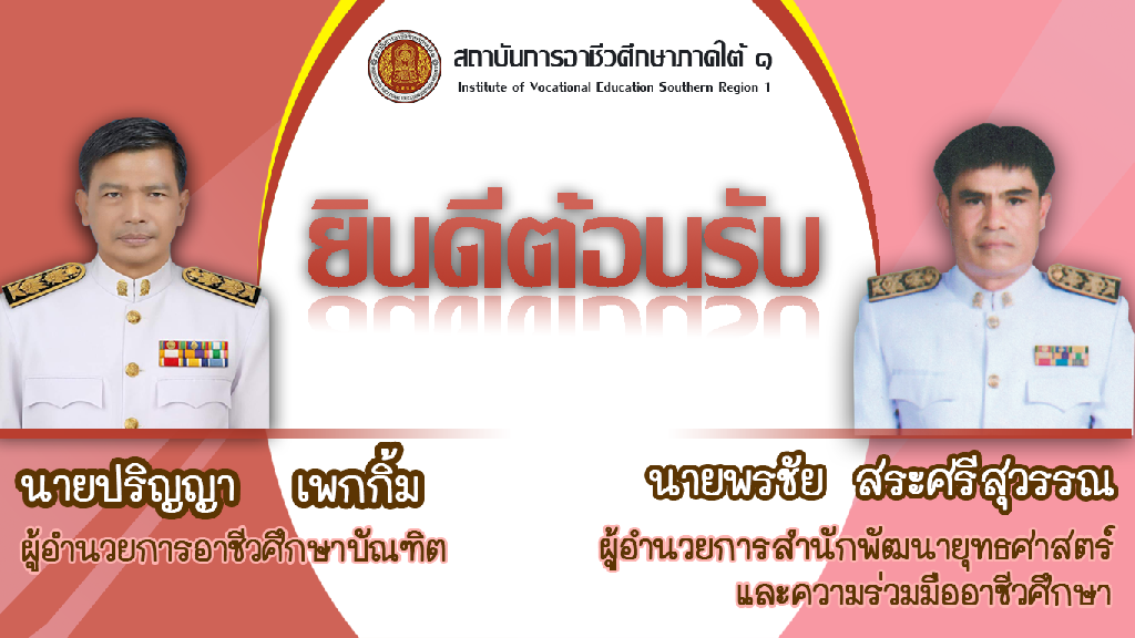 ยินดีต้อนรับและแสดงความยินดีกับ..นายปริญญา เพกกิ้ม ผู้อำนวยการอาชีวศึกษาบัณฑิต และนายพรชัย สระศรีสุวรรณ ผู้อำนวยการสำนักพัฒนายุทธศาสตร์และความร่วมมืออา...เพิ่มเติม