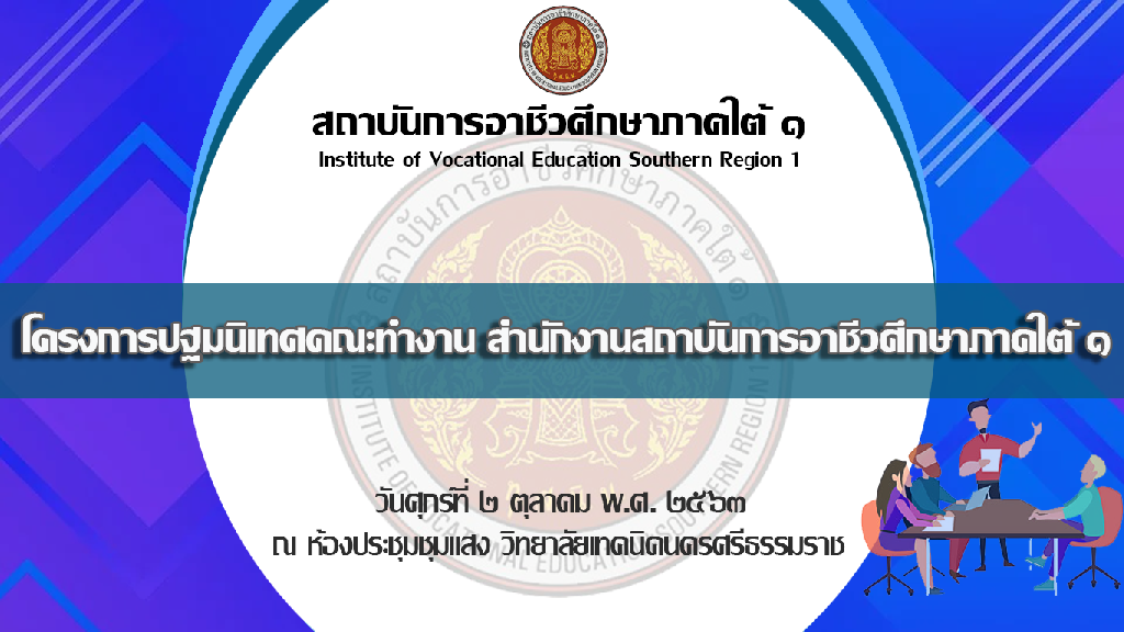 หัวข้อข่าว : โครงการปฐมนิเทศคณะทำงานสำนักงานสถาบันการอาชีวศึกษาภาคใต้ 1