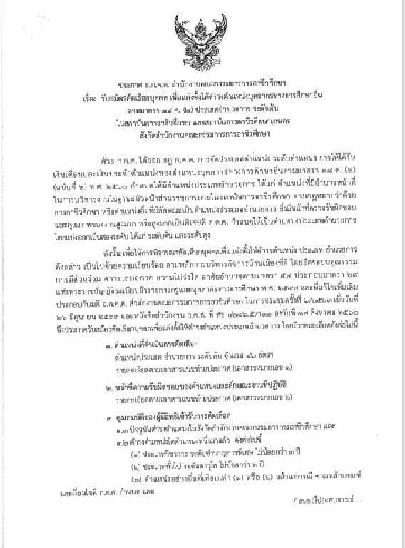 หัวข้อข่าว : รับสมครคัดเลือกบุคคล เพื่อแต่งตั้งให้ดำรงตำแหน่งบุคลกรทางการศึกษาอื่น ตามมาตร 38 ค.(2) ประเภทอำนวยการ ระดับต้น ในสถาบันการอาชีวศึกษา